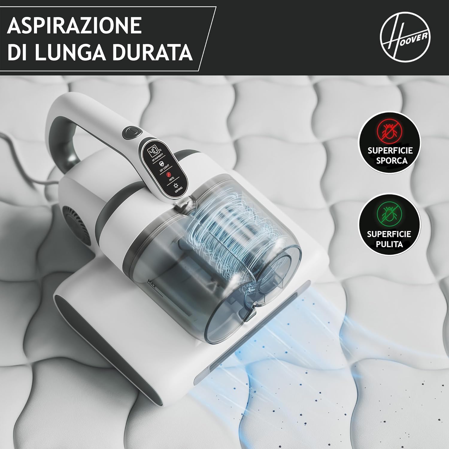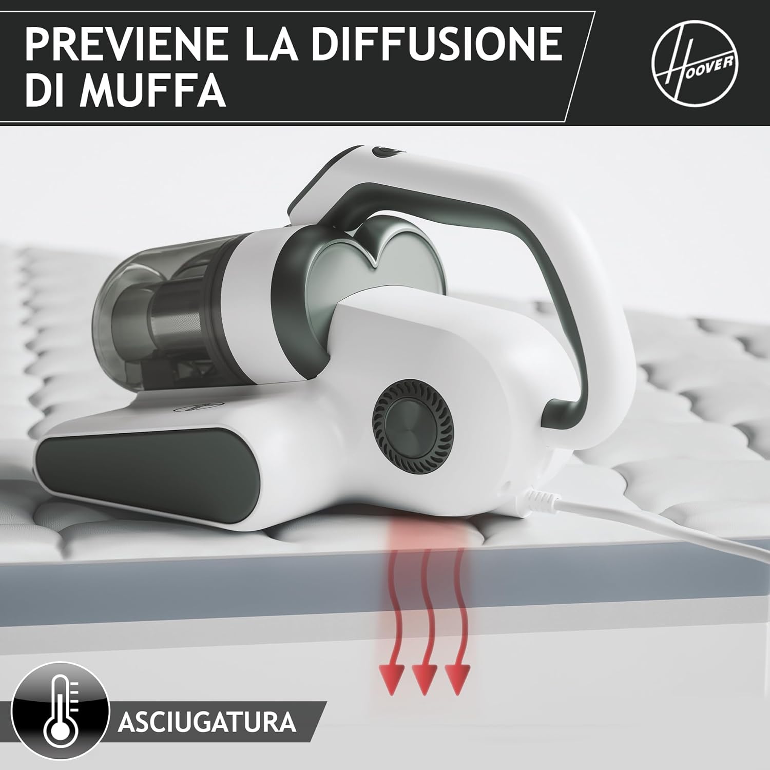 - BATTIMATERASSO: Hoover HMC5 è il nostro battimaterasso più potente. Grazie alle sue 4 funzioni automatiche, al sensore polvere integrato e all’innovativo agitatore, è l’alleato perfetto per la pulizia profonda di materassi, divani e tessuti d’arredo.